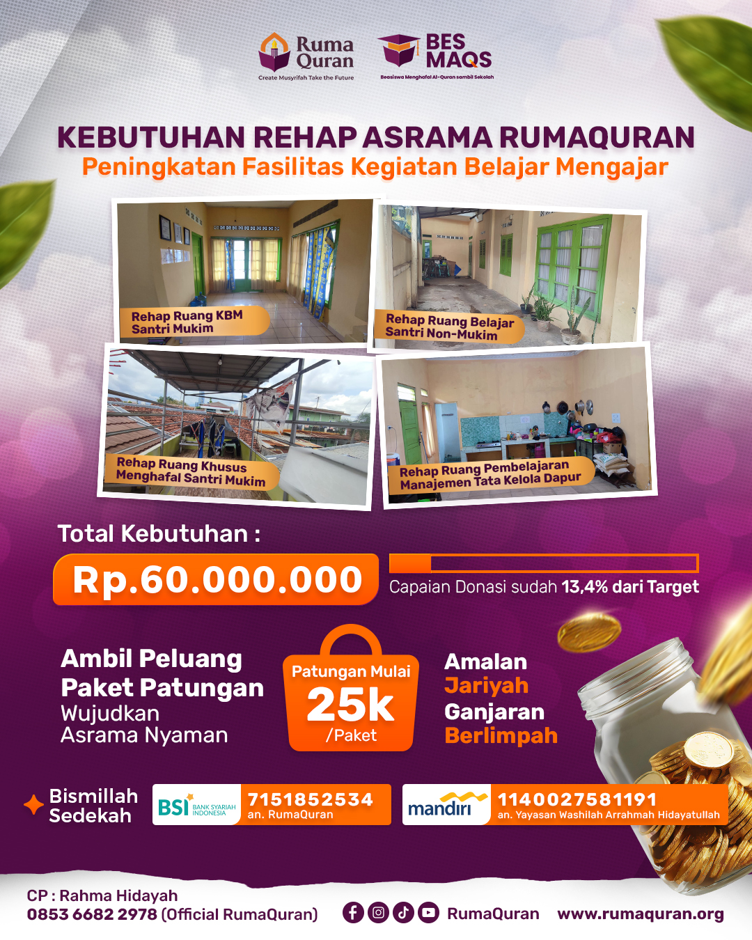 Mari bantu aktifkan Asrama Santri RumaQuran.